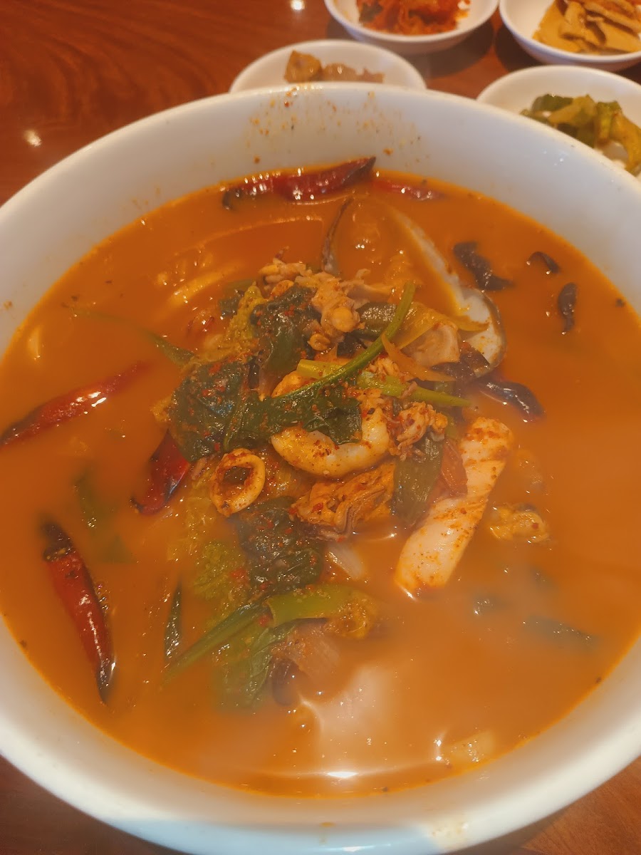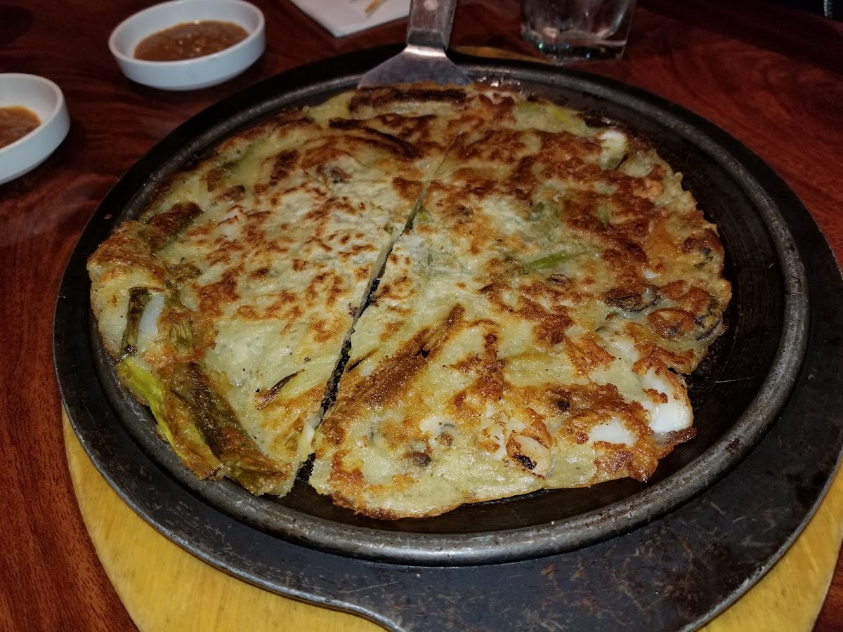 Crispy and savory, the seafood pancake is a Korean classic that features a delightful mix of seafood and vegetables, all encased in a golden, crispy batter. It’s the perfect starter to share with friends or family.