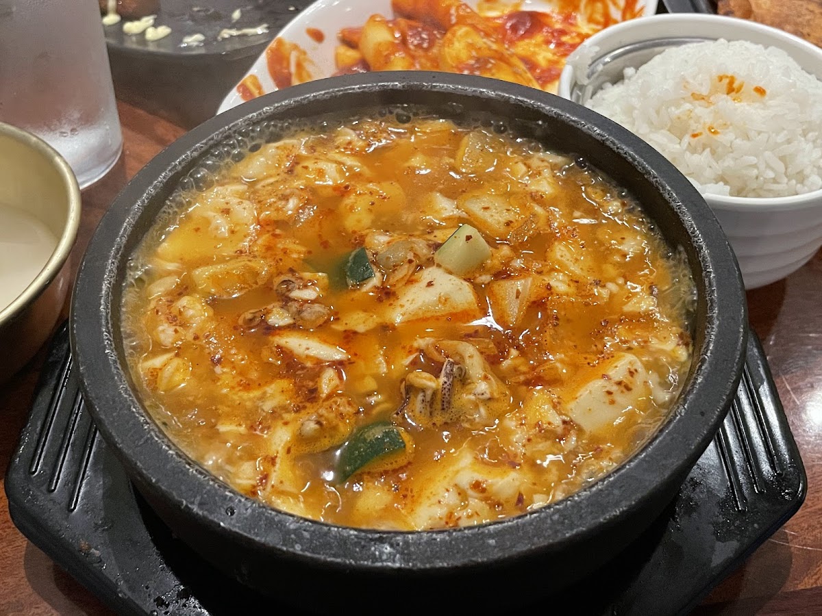 Soft tofu jigae is a Korean stew made with silken tofu, vegetables, and a flavorful broth. The dish is comforting and perfect for those seeking something warm and satisfying.